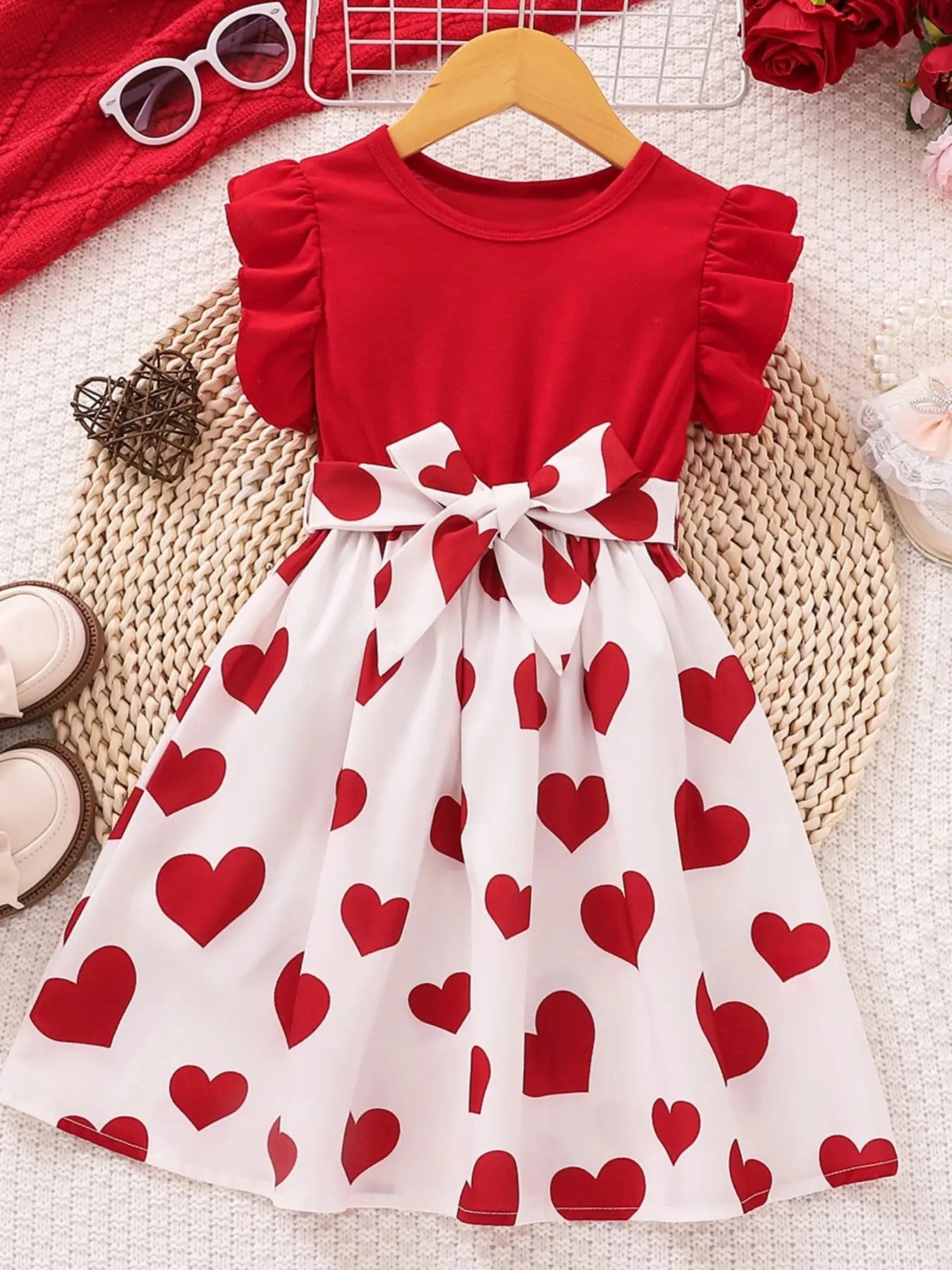 فستان أطفال صيفي لطيف بأكمام قصيرة من أميرة الحب الحمراء لعام 2024، ملابس حفلات غير رسمية